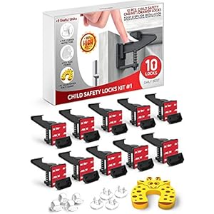 Cabinet Locks & StrapsChild Safety Cabinet Locks – (10 Pack) Baby Proofing Latches to Drawer Door Fridge Oven Toilet Seat Kitchen Cupboard…