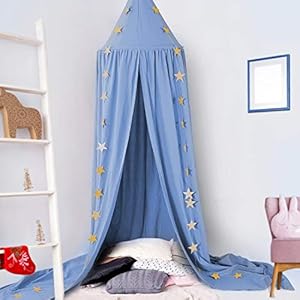 LARGE SIZE KIDS BED CANOPY – The boys girls room decor has a total height of 94.5 inches and a lower width of 108 inches. The tent has an opening for easy access and is decorated with lovely stars. At the same time, the installation instructions are included in the product and are easy to install without any skill.