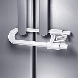 PREMIUM MATERIALS: Made of eco-friendly and durable ABS material, the baby safety cabinet locks are 100% non-toxic and safe for kids. The U-shaped latch is adjustable to fit different distances between handles (max width 4.92’’).SKU: n/a