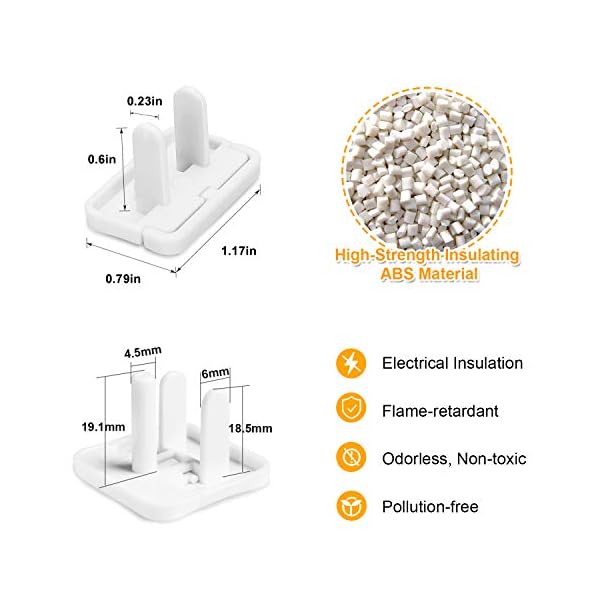 INSULATED AND ECO-FRIENDLY MATERIAL- Made of high quality durable ABS plastics with electrical insulation, flame-retardant, odorless, non-toxic, pollution-free for children’s health, also this brand-new certificate-guaranteed raw materials is sturdy that makes Babepai baby electrical outlet covers not easy to break in the outlet, socket and female end of extension cable. More secure for children’s health and safety!