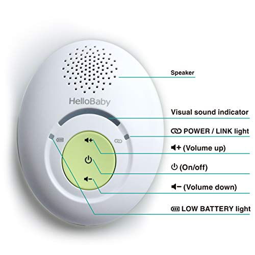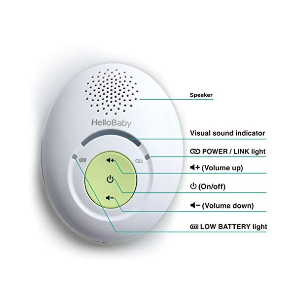 A set of five LED lights on the parent unit indicates the level of sound in your baby’s room so you can visually monitor noise level with the receiver muted.