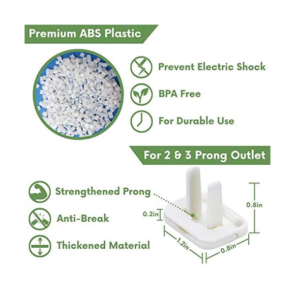 STRONG & STURDY – Our outlet caps are made of high-quality ABS plastic, which is eco-friendly, BPA free, and non-toxic. Thickened prongs make each socket cover durable and sturdy.