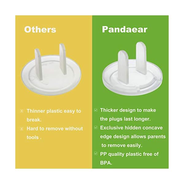 OUTLET PLUG COVERS BY PANDAEAR – Unlike other socket covers, ours are made from PP quality plastic, free of BPA. They are designed to last longer and feature an exclusive hidden concave edge which allows parents to remove the covers easily without the need for tools