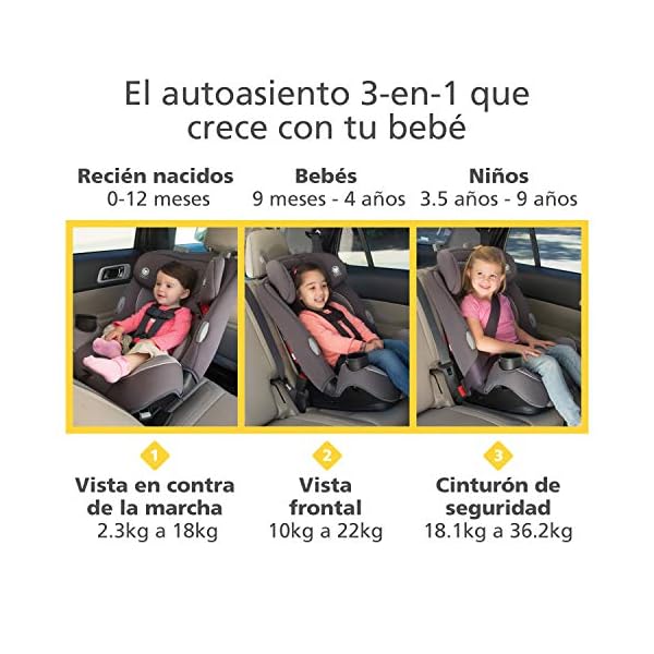 Extended Use 3-in-1 Car Seat: Rear-facing 5-40 pounds, Forward-facing harness 22-50 pounds, and Belt-positioning 40-80 pounds