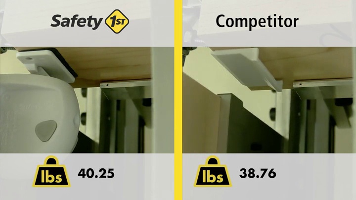 Get the safety lock system that has been proven stronger and help keep your little explorer from accessing off-limit cabinets and drawers. The Safety 1st Adhesive Magnetic Lock System is simple-to-install and proven stronger against the competition. It’s easy for parents to use, but the key is simple to keep up high and out of your child’s reach. The locks are installed inside the cabinets so that they will stay invisible to both your child and visitors passing through. In side by side comparisons with leading competitors using real life toddlers, the Safety 1st Adhesive Magnetic Locks were strong enough to keep even the cleverest of toddlers out. Even in lab testing using state of the art mechanical pull force equipment, Safety 1st outperformed the competition. Toddler Tested. Proven Stronger.
