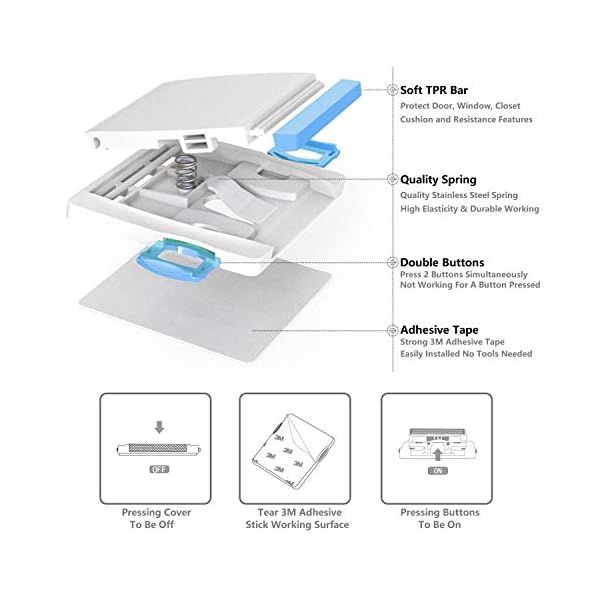 STRONG DURABILITY – Never worry about sliding window locks broken with high quality ABS plastic, stainless steel spring and strong 3m adhesive tap. The 3M window lock will not lose effectiveness or power even when you routinely open and shut your hung windows every day!