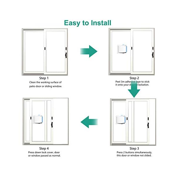 SIMPLE INSTALLATION – Installing sliding door lock has never been this easy, no drilling tools needed! Simply clean the working area for this lock, peel off 3M tape and stick this device onto the desired location of sliding doors for your patio, closet, cabinet as well sliding window!