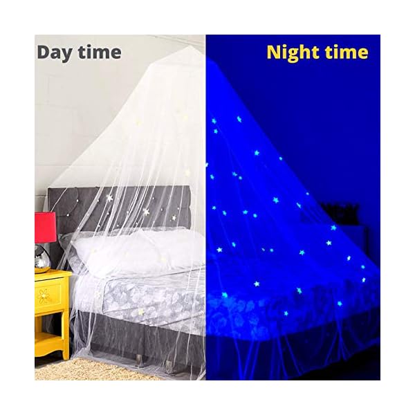 ☀️💡 MAKE THE MOST OF THE GLOW – For best results, expose the bed canopy to natural daylight or indoor light and be rewarded with hours of glowing stars when the room is dark. (See actual stars in 3rd image & video). Children will be fast asleep by the time the stars fade into the galaxy. An awesome way to end the day!