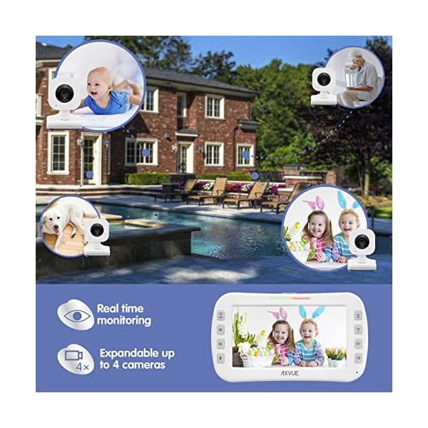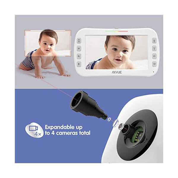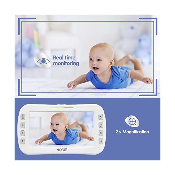 Axvue Video Baby Monitor, Comfortable Slim Design Handheld Enclosure, 4.3″ Screen Monitor & 2 Camera, Range up to 1000ft, 12 Hour Battery Life, 2-Way Talk, Night Vision, Temperature Monitor, No WiFi.