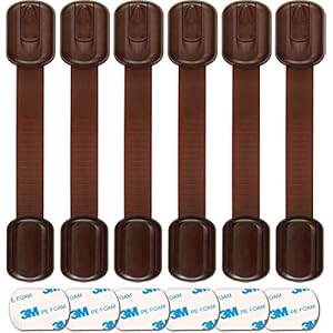MULTIPURPOSE BABY PROOFING SAFETY LOCKS. Secure your child by locking cabinets, appliances, stove, drawers, refrigerators, trash cans, toilet seats, etc. Unlocking these latches presents no difficulties for adults, but can become an insuperable barrier for toddlers. NEW IMPROVED DESIGN: the strap is fixed in place more securely to avoid accidental opening. A brown color to best match your furniture. Can be used as a PET PROOFING PRODUCT and earthquake locks